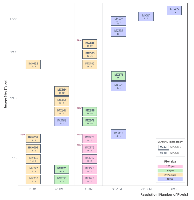 STARVIS™ / STARVIS 2 Product Lineup(Monochrome)