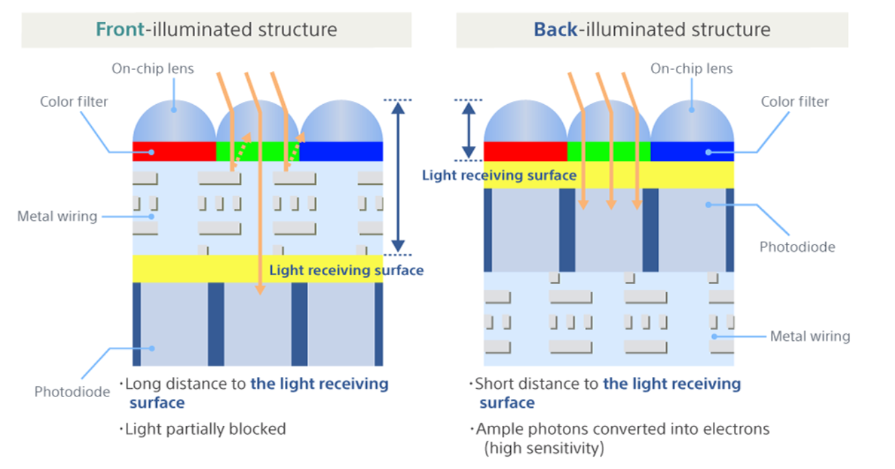 Light travels into an image sensor through a lens and reaches a photodiode, which converts the light into electrical signals. It is this photodiode that holds the key to higher sensitivity—how efficiently it collects light.