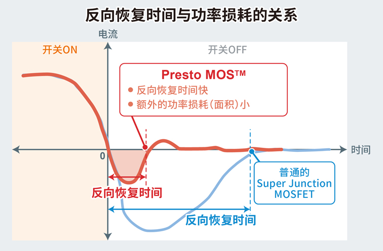 PrestoMOS™是ROHM自有的功率MOSFET品牌,该品牌的MOSFET产品不仅保持了Super Junction MOSFET高耐压和低导通电阻的特点,还缩短了内置二极管的反向恢复时间。因其可降低开关损耗而越来越多地被用于空调和冰箱等配备逆变电路的应用。