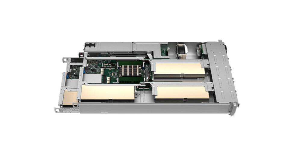 GPU: 每个节点最多 3 个双宽 PCIe GPU / CPU: Intel® Xeon® 或 AMD EPYC™ / 内存:最多 8 个 DIMM,每个节点 2TB / 驱动器:每个节点最多 2 个前端热插拔 2.5 英寸 U.2